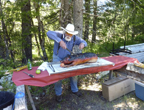 18: OBLIGATIONS AND DISTRACTIONS In his most businesslike manner he went to the Zom and asked if they would like a little light work--nothing too taxing. And the Zom said that would be fine, but in exchange they wanted to hunt wild boar on Spanakopitus's land. Spanakopitus agreed, but only on the condition that the Zom first put in their three days' work on the Big Engine. The Zom protested that they wanted to hunt first and work later, but Spanakopitus held firm: work first, then pursue boar. But if at the end of each day's work the Zom wanted to go out and scout for boar, that would be allowed. So diligently the Zom set to work, reminding themselves that for only three days one can put up with almost anything. To pass the time as they worked they sang Zom songs and traded Zom recipes for roast boar. Occasionally they sneaked a swig of Zom beer. And as soon as they got off work, half of them went out to scout for boar, while the other half dug a pit and gathered rocks, preparing for the coming barbecue. Three days came and went, as three days quickly will, and the Big Engine was all slickly oiled and finely fitted out with new filters. And with great glee the Zom set off--all of them this time--on their great boar hunt. ![]() Carving up a fine feast. 19: Aftereffects and Reprisals Home |